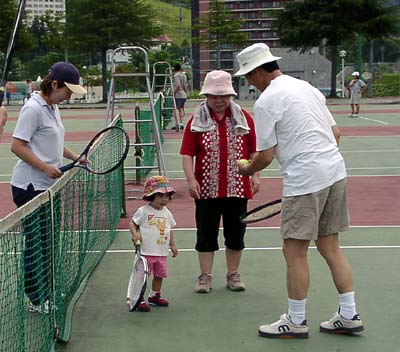 雨の予報にもかかわらず、ほぼ全日程にわたってテニスを満喫することが出来ました。 そして、多くの方々の参加で、すごい盛り上がりでした。 参加出来なかった方のために、その様子をちょっとだけお見せいたします。
